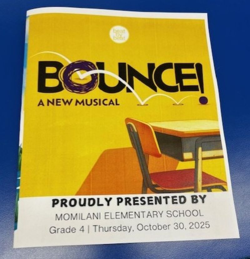 I would like to express my gratitude to the Momilani Elementary School ohana for the invitation to attend Thursday morning’s production of BOUNCE! A NEW MUSICAL performed by the amazingly talented and inspirational 4th grade class.