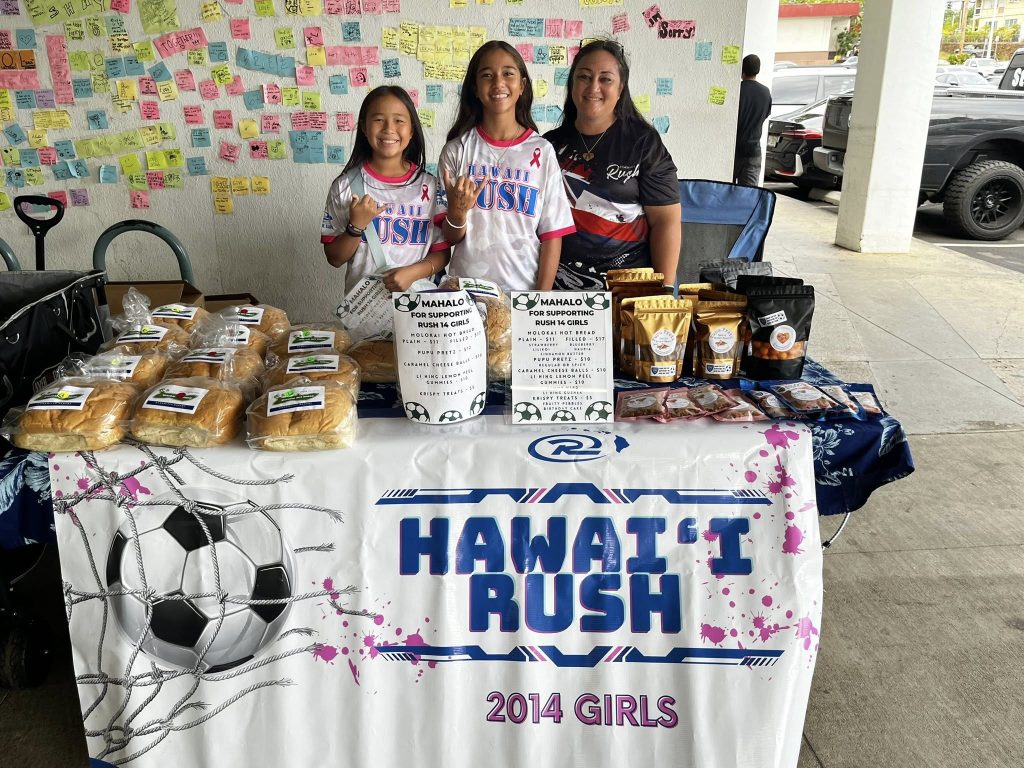 Check out the HAWAI’I RUSH 2014 GIRLS SOCCER fundraiser today, Sunday, November 9 from 8am-3:00pm at the Pearl City Shopping Center near Don Quijote and HMart.