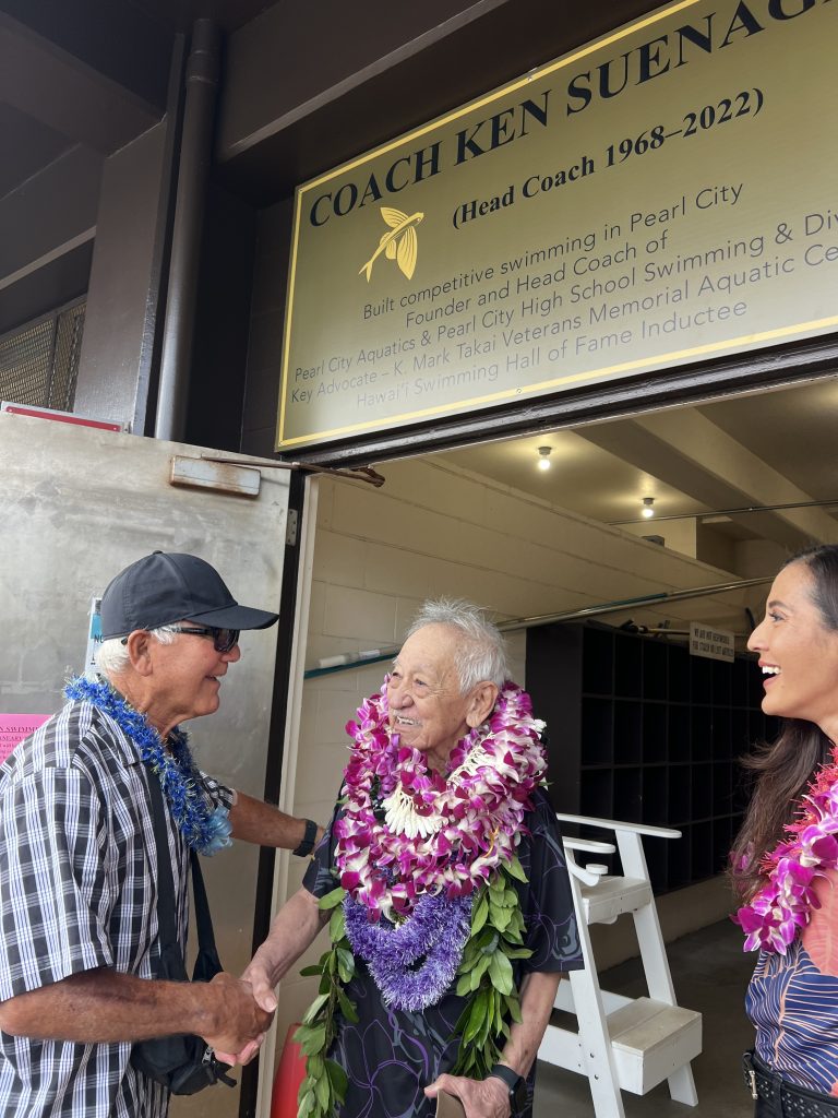 He continued his consistent laps towards this mission by founding Pearl City High School’s swim team in 1972, leading the program and his haumana (students) to several titles and individuals awards. This included the late U.S. Representative K. Mark Takai, who was a four-time high school swimming State champion under Coach Suenaga. He would later advocate for the development of the K. Mark Takai Veterans Memorial Aquatics Center, a world-class aquatic center in the Patsy T. Mink Central O’ahu Regional Park, which opened in 2003.