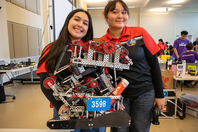 The VEX V5 Robotics Competition featured both high school and middle school teams. This year’s challenge, Push Back, is a fast-paced game that pits alliances of two teams against another alliance and requires robots to score blocks in goals, control zones within goals, and park in defined zones at the end of the match. Robots have a fifteen second period of autonomous play followed by a one minute and forty-five second (1:45) driver-controlled play.