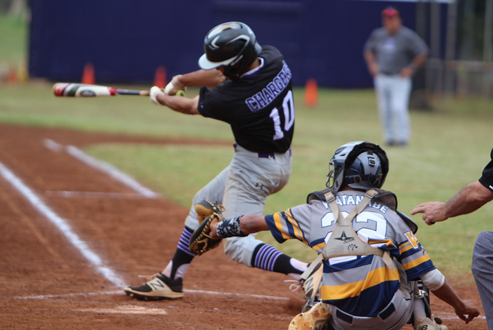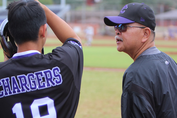 Pearl City’s Alika Almaraz looked strong from the hill in six complete innings of work in the Chargers 3-2 win over the visiting Waipahu Marauders on Wednesday, March 21, 2018 at Pearl City High School.