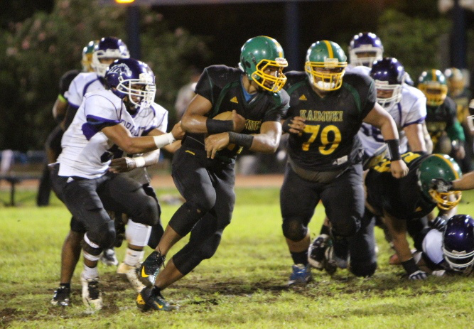 Kaimuki powered past Pearl City 33-19 in Oahu Interscholastic Association Division 2 Varsity Football played at Kaiser High School on Saturday, September 12, 2015.