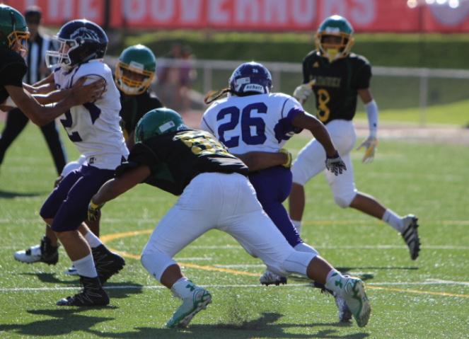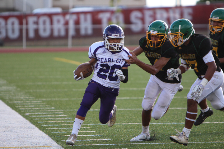 Pearl City and Kaimuki played to a 14-14 tie in a battle of the undefeated in Oahu Interscholastic Association Division 2 Junior Varsity Football played on Saturday, September 16, 2017 at Farrington High School’s Skippa Diaz Stadium.
