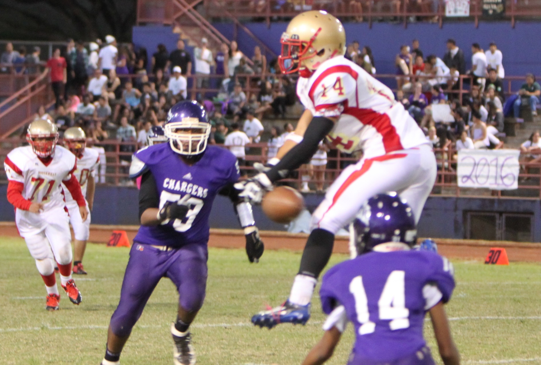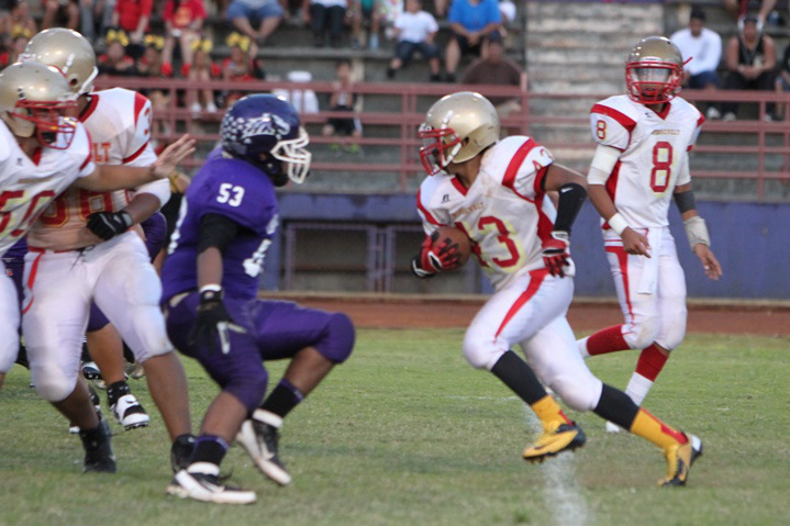 Pearl City ran over Roosevelt 28-6 in OIA White Division Junior Varsity Footballo played on Friday, September 20, 2013 at Pearl City High School's Edwin "Bino" Neves Stadium.