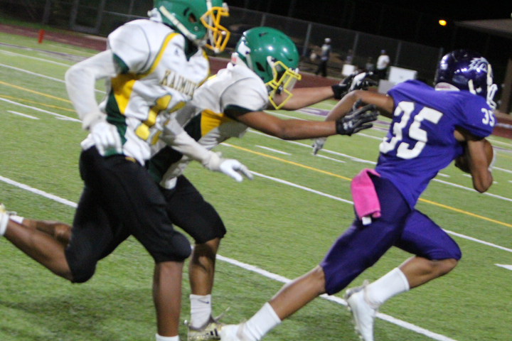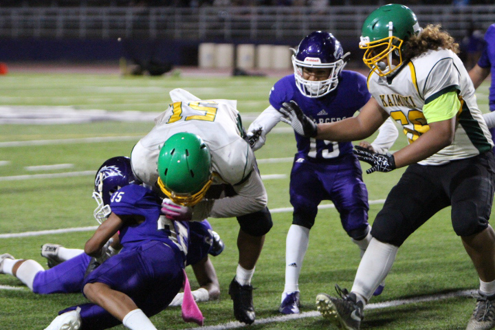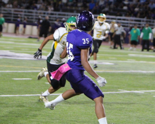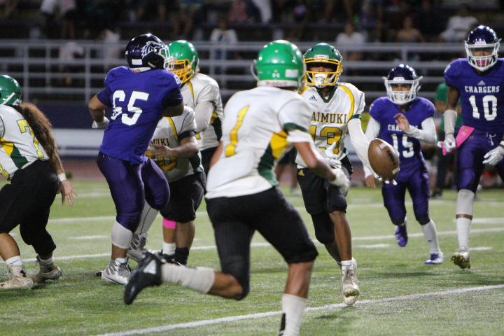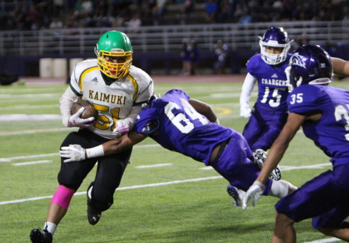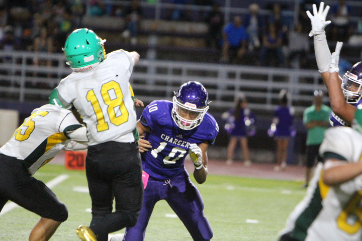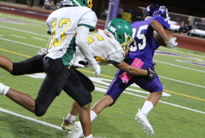 The Pearl City Chargers advanced to the 2018 Oahu Interscholastic Association Division 2 Junior Varsity Football Championship title game after defeating the visiting Kaimuki Bulldogs 21-6 on Friday, October 19, 2018 at Pearl City High School’s Edwin Bino Neves Stadium.