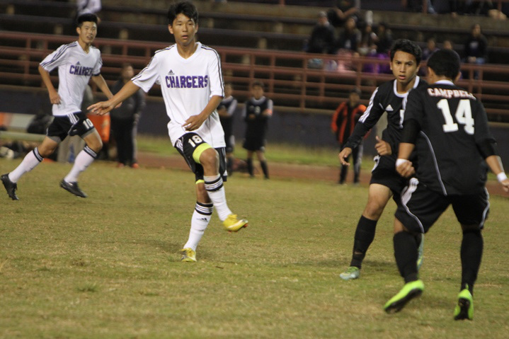 The Pearl City Chargers shut out the visiting Campbell Sabers 3-0 to improve to 5-0 in Oahu Interscholastic Association Red Western Division Varsity Boys Soccer on Tuesday, January 6, 2015 at Pearl City High School.