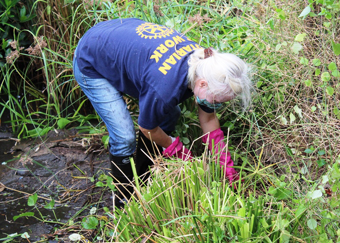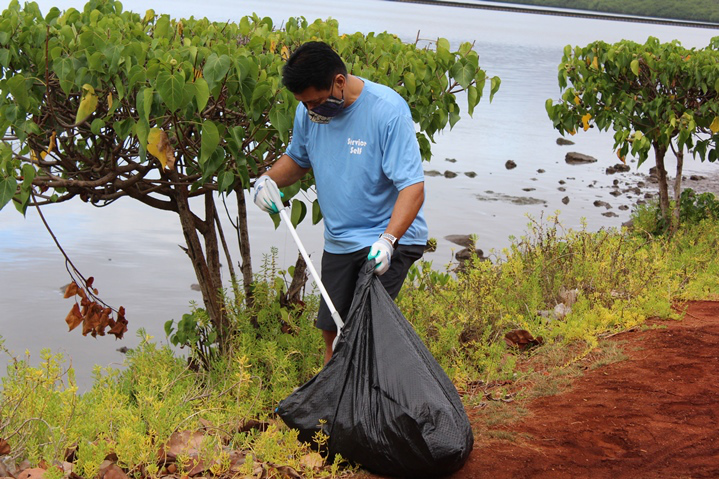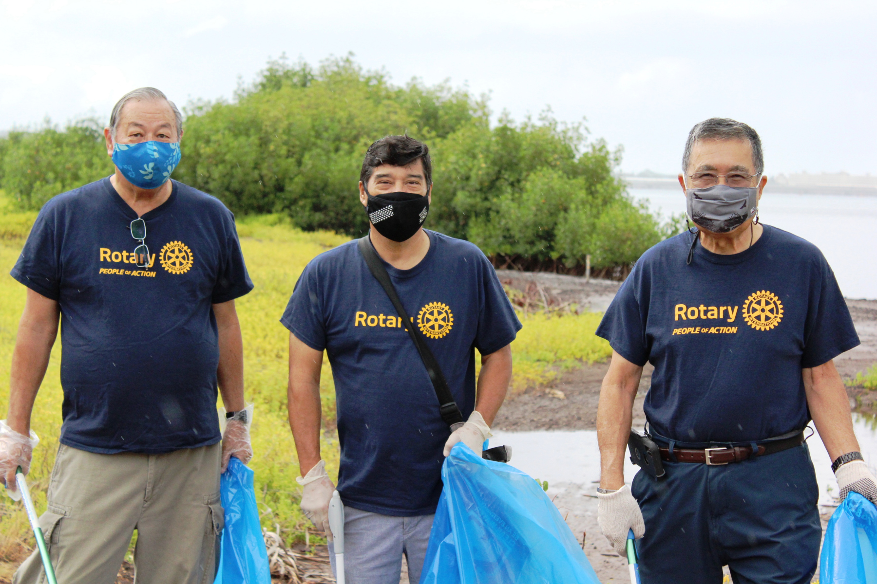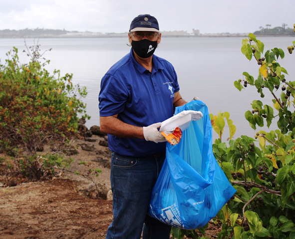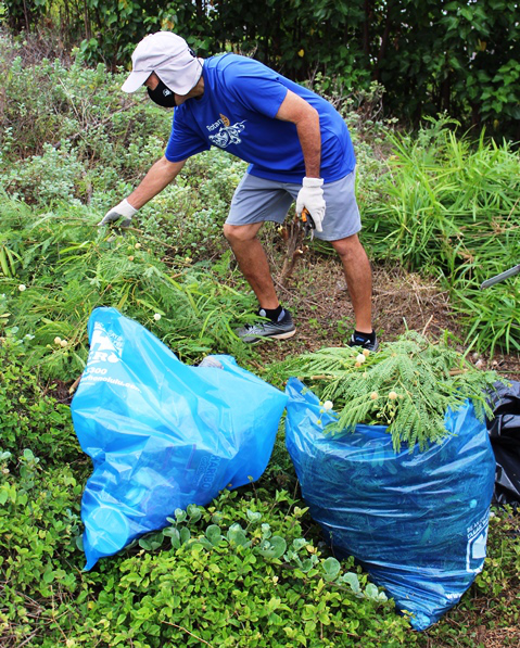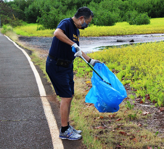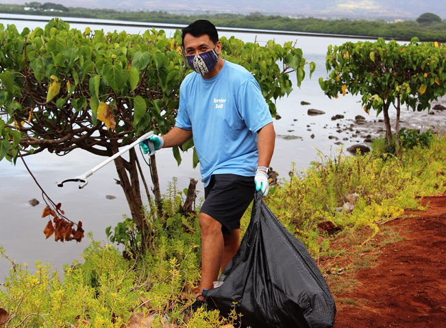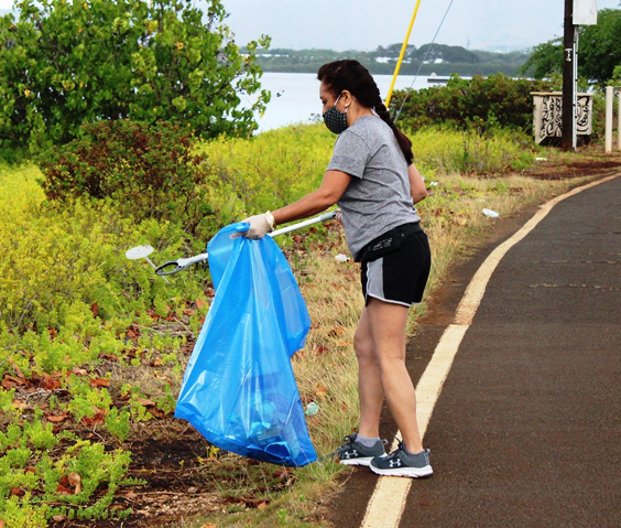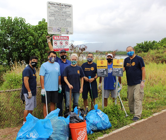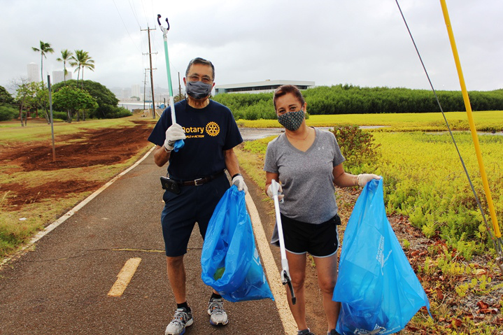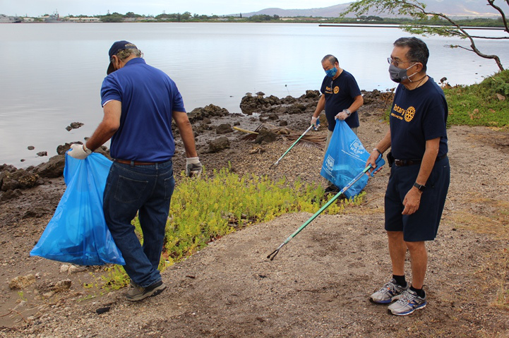 Pearlridge Rotarians share volunteer spirit at Pearl Harbor Bike Path clean-up (8.21.2021)