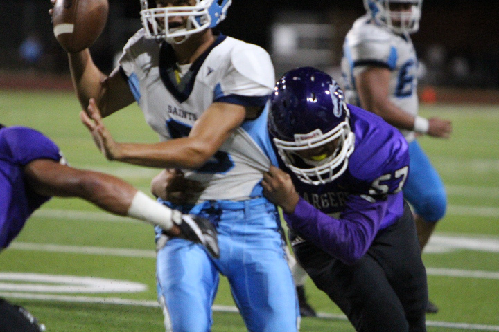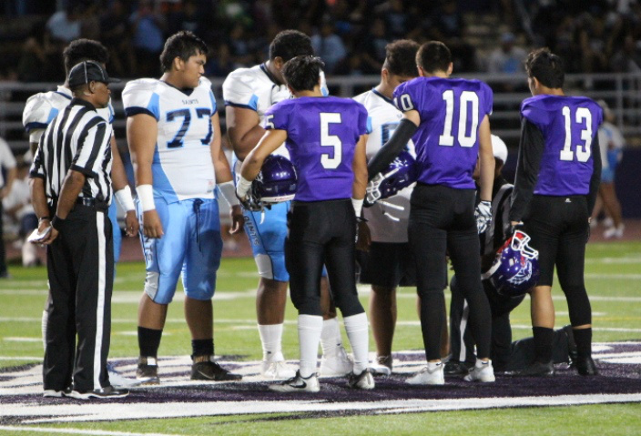 The Pearl City Chargers varsity team lost a tough game 27-13 to the visiting St. Francis Saints in a duel of top Division 2 schools representing the Oahu Interscholastic Association and Interscholastic League of Honolulu on Friday, August 31, 2018 at Pearl City High School’s Edwin Bino Neves Stadium.